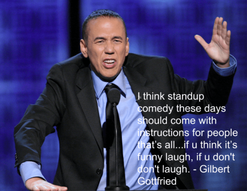 “I think standup comedy these days should come with instructions for people that’s all…if u think it’s funny laugh, if u don’t don’t laugh.” – Gilbert Gottfried