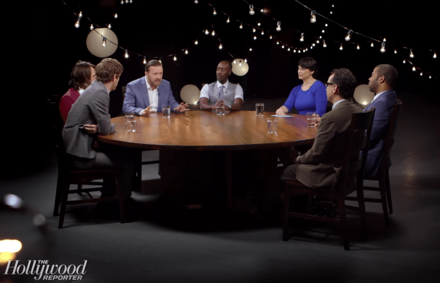 A comedy friend shared this fantastic YouTube video with me that’s from The Hollywood Reporter: a roundtable discussion with a bunch of comedy actors who are on shows that are really big right now. Ricky Gervais (Derek), Don Cheadle (House of Lies), Will Forte (Last Man on Earth), Fred Armisen (Portlandia), Jordan Peele (Key & Peele), and Thomas Middleditch (I’m not gonna tell you which show he’s on…jk it’s Silicon Valley). They talk about what it’s like to be improving on set, how working with the writers and directors works, and just generally a lot of stuff you wouldn’t normally hear about their television shows.